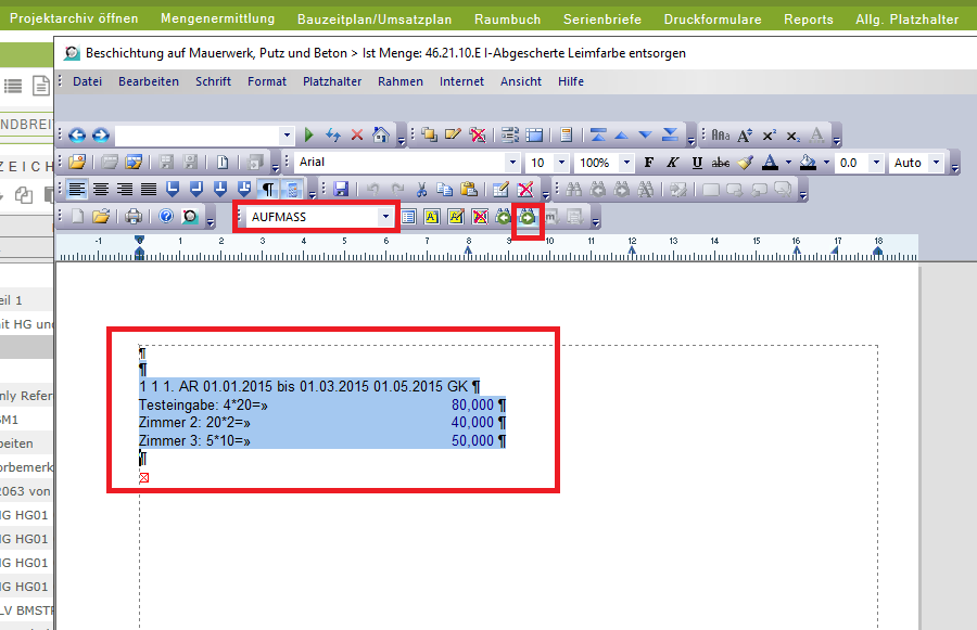 Wenn die Mengen aus einem Aufmaßblatt kommen, bemerken Sie, dass der ganze Text für einen Block ein großer Platzhalter ist (AUFMASS).