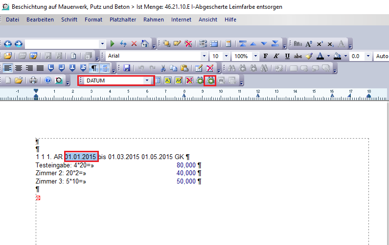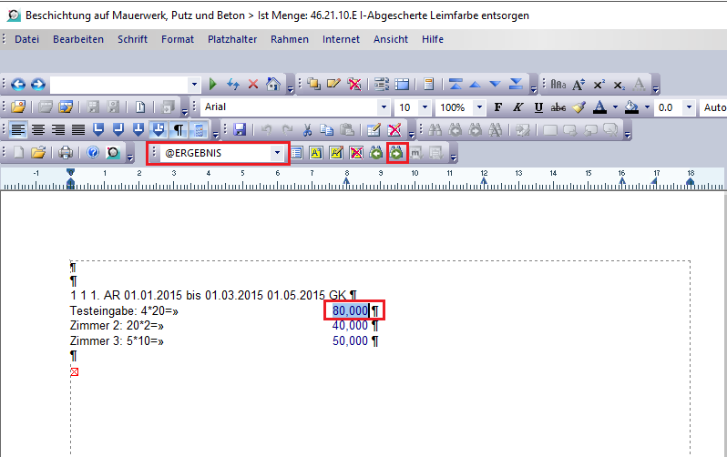 In diesem Rechendokument haben Sie die Möglichkeit manuelle Ergänzungen, die nicht in dem Aufmaßblatt enthalten sind, durchzuführen. Sie müssen jedoch beachten, dass Sie die Ergänzungen außerhalb des Platzhalters schreiben!