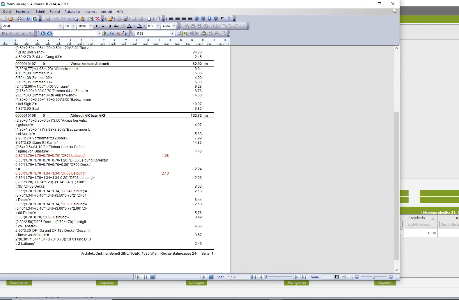 Korrekturen siehe im Screenshot oberhalb (Aufmaß Zeile von der Firma wurde durchgestrichen (Rot), diese Zeile wurde darunter kopiert und korrigiert);