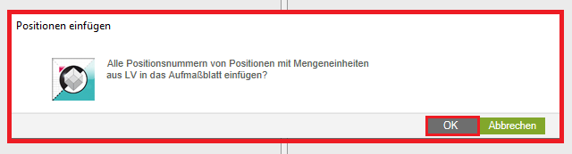 Diese Positionen werden in das Aufmaßblatt leer (ohne Menge) eingefügt.