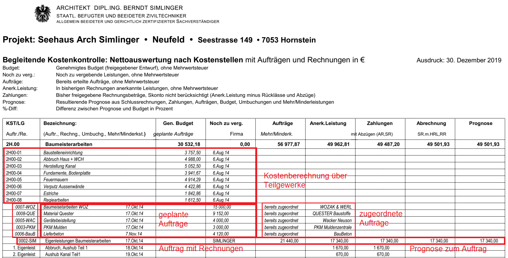 Aufträge kompensieren in weiterer Folge jene Leistungen in der Kostenprognsoe, die in geplanten Aufträgen vorbereitet wurden.