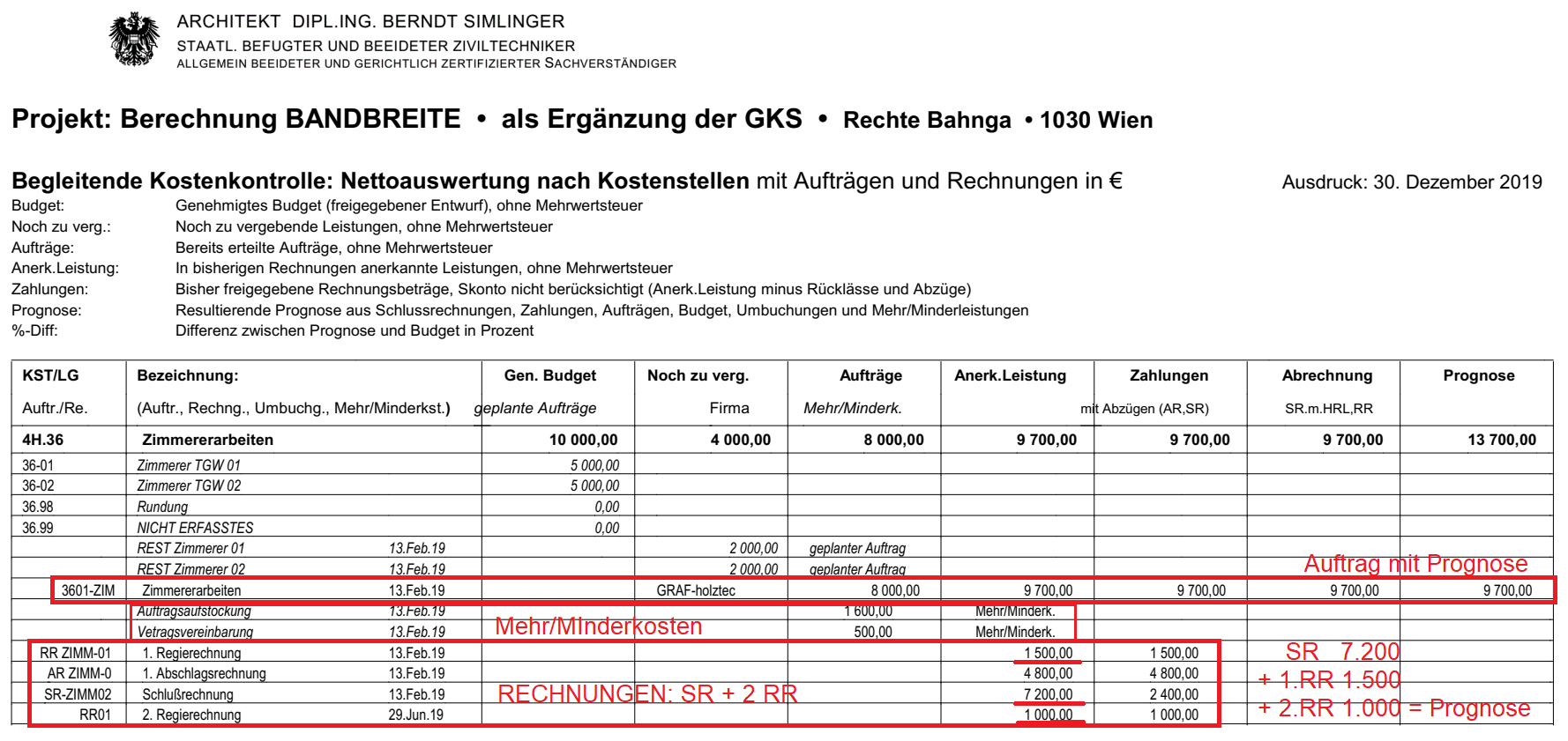 Schlussrechnungen werden in der Spalte „Abrechnung“ erfasst.