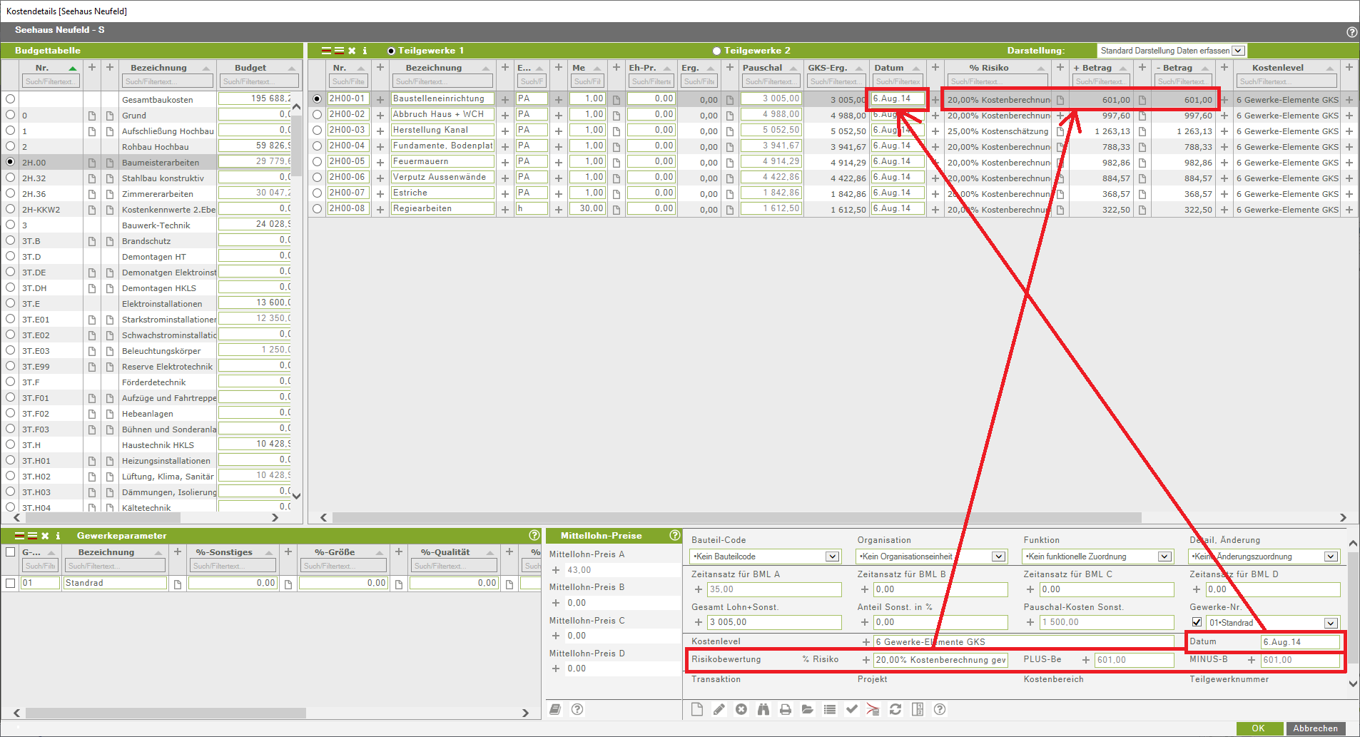 Der Einsatz der Teilgewerke ist ein sehr umfangreiches und mächtiges Werkzeug bei der Erstellung von präzisen und mit Bandbreiten versehenen Kostenberechnungen.