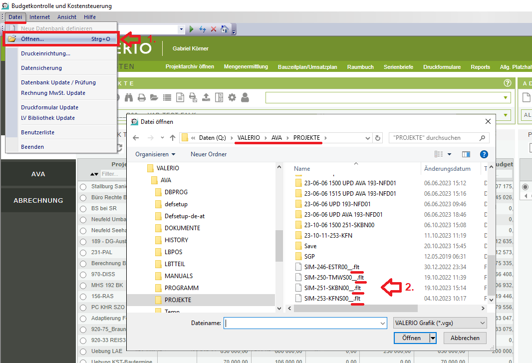 Alternativ können Sie auch von bestehenden Projekte deren Filter-Datei als Vorlage verwenden. Diese finden Sie im Verzeichnis Valerio/AVA/PROJEKTE/*projektkennzeichen*.flt