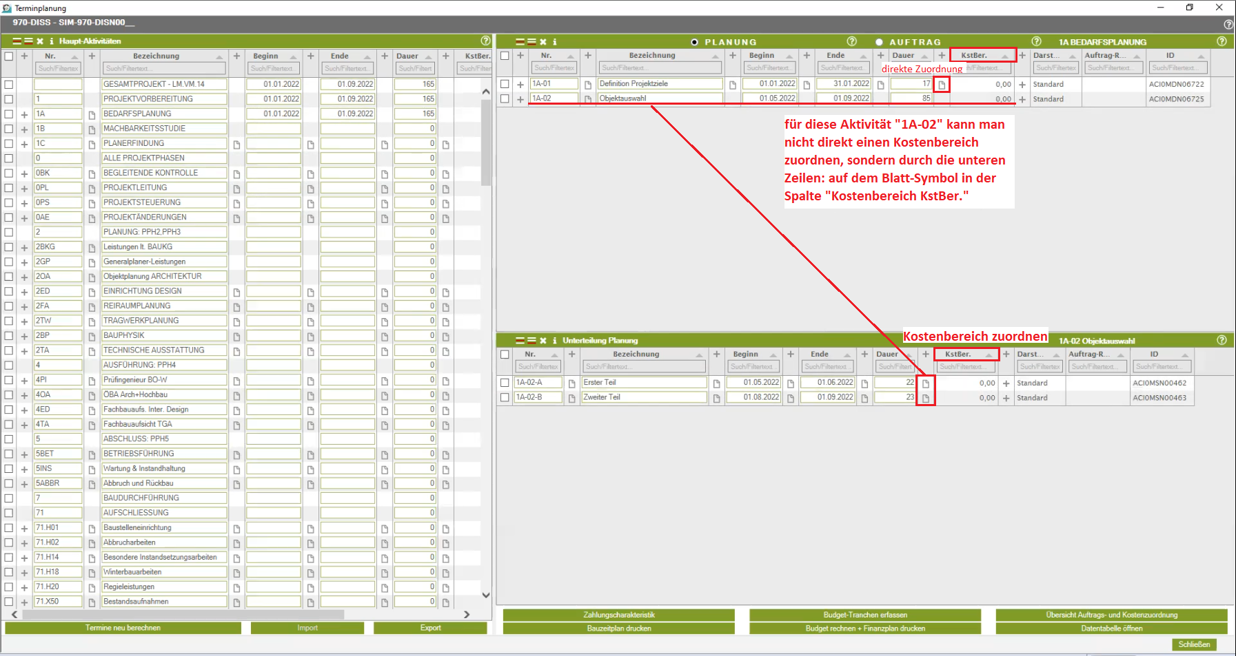 Zuordnung der geplanten Aktivitäten zu den Kostenbereichen