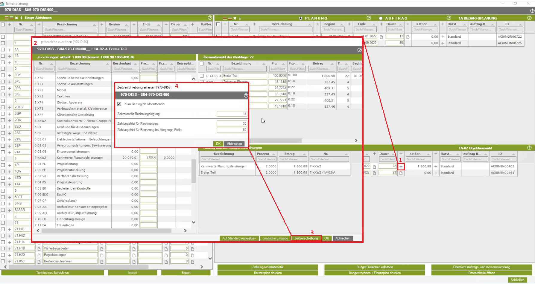 Zeitverschiebung Leistungserbringung zu Rechnungslegung und Rechnungsfälligkeit erfassen: