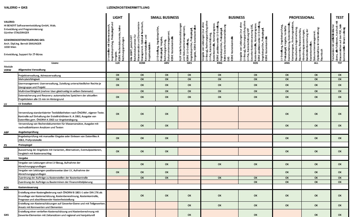 LIGHT : für einfache Basisfunktionen, LV erstellen bis Vergabe, keine Rechnungsprüfung