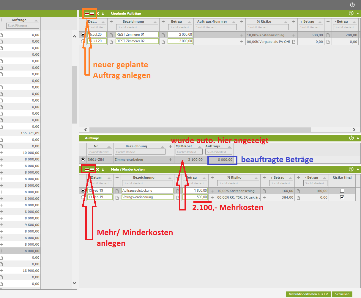 Geplante Aufträge und angelegte Zusatzaufträge werden automatisch bei der Kostenprognose berücksichtigt.