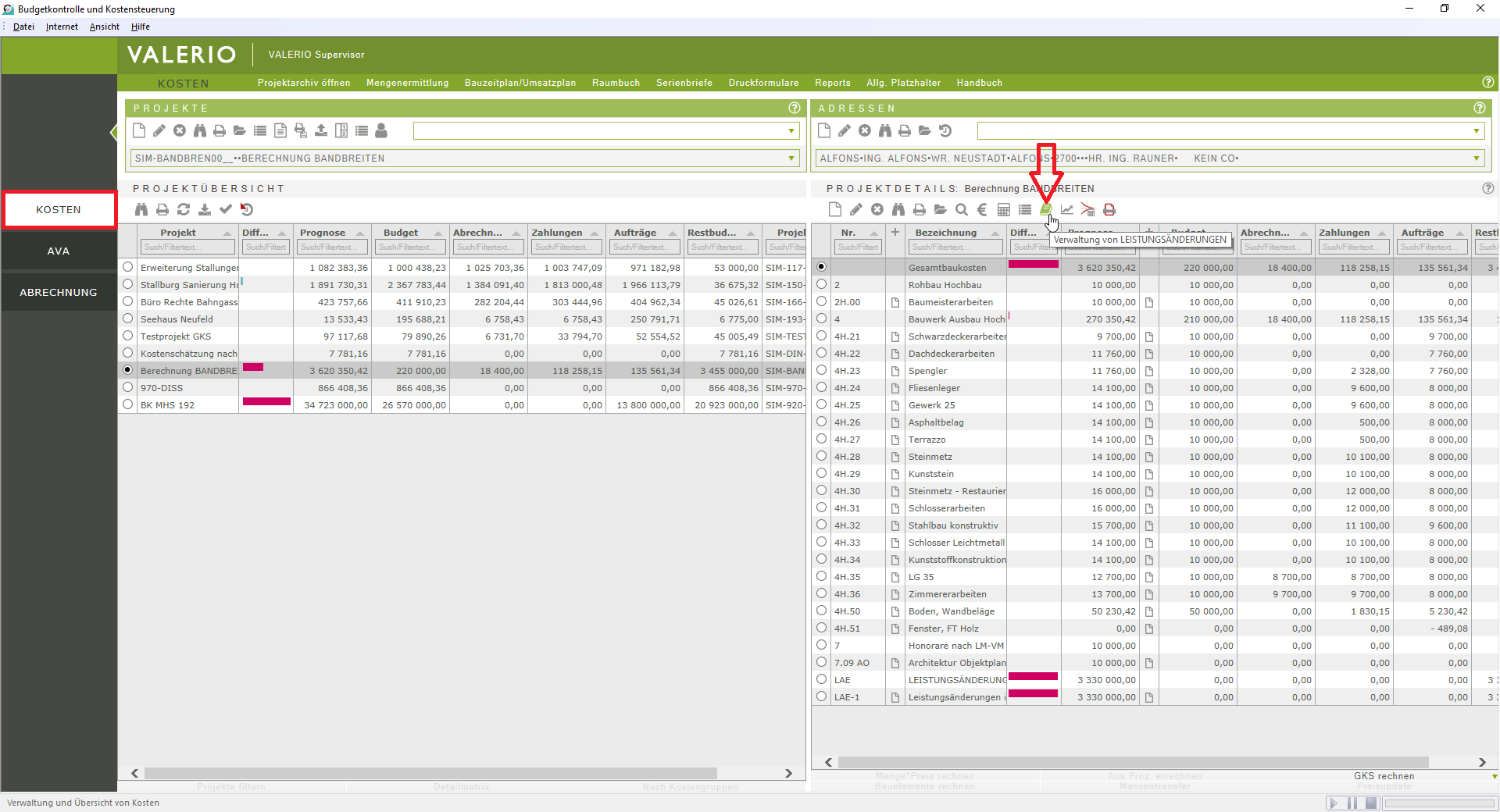 Bitte prüfen Sie jedenfalls, ob Ihre Projektdatenbanken aktuell sind, um alle Funktionen der Leistungsänderungen nutzen zu können.