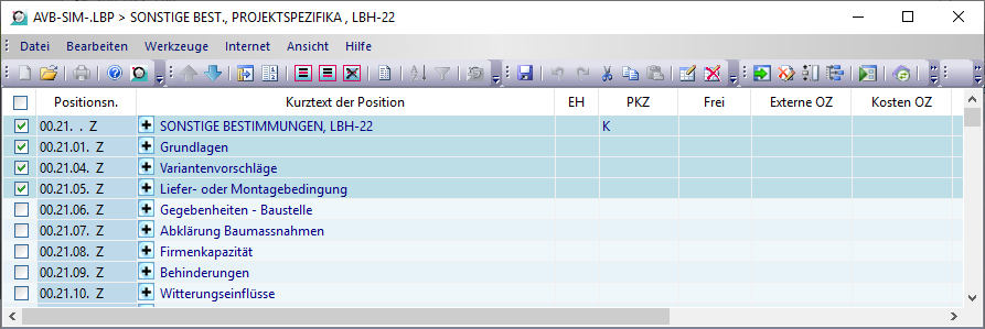 Sie erhalten nun ein Fenster mit den LB-Positionen. Diese können Sie nun wie bei einem LV bearbeiten (siehe Kapitel Leistungsverzeichnis bearbeiten).