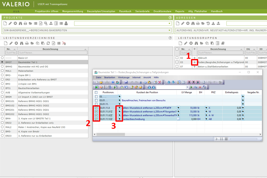 Wählen Sie zunächst das Leistungsverzeichnis und die Leistungsgruppe deren Langtexte Sie bearbeiten bzw. ergänzen möchten aus.