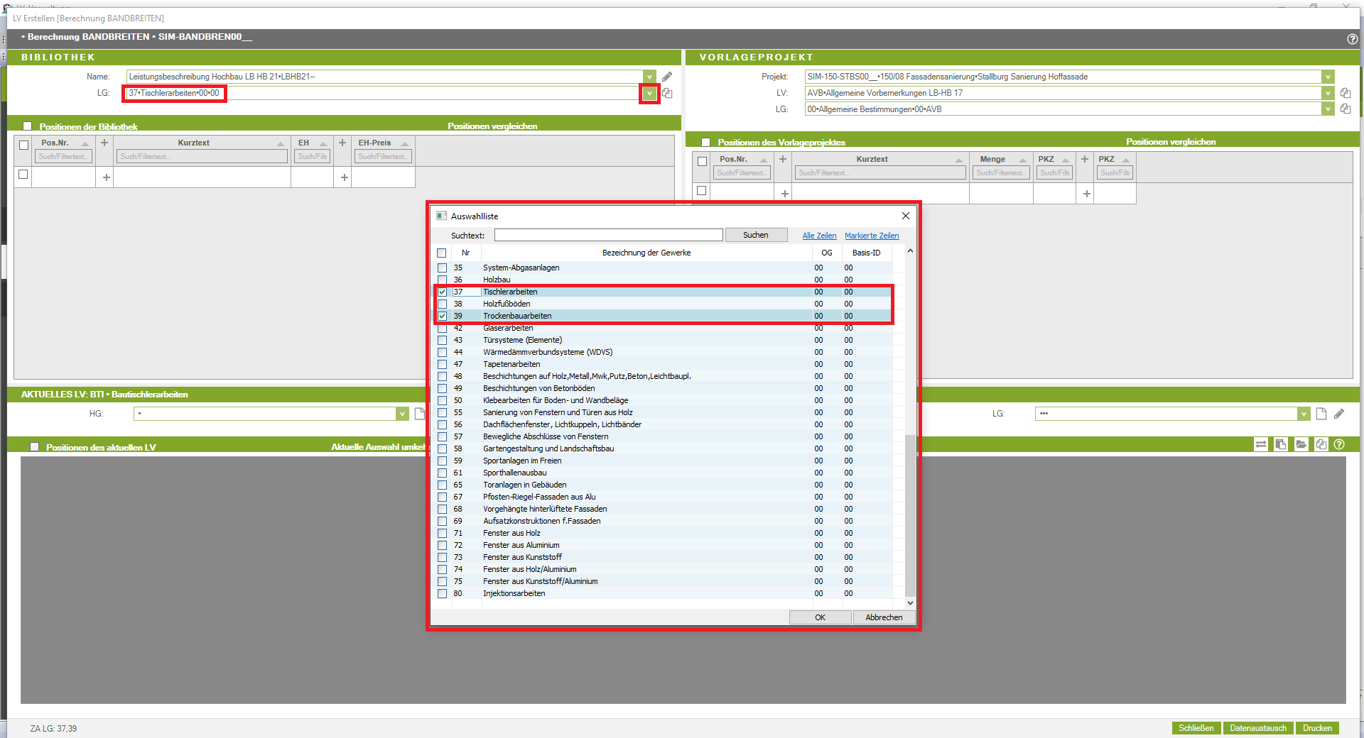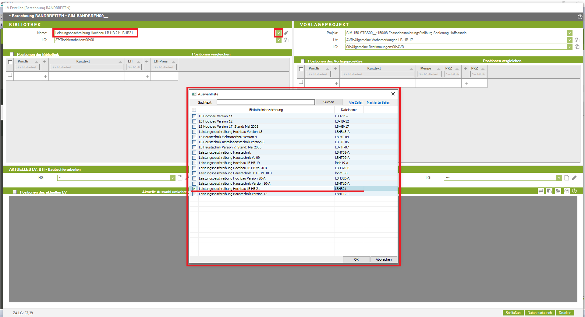 Unterleistungsgruppen automatisch gewählt werden. Mit STRG + Linke Maustaste wird aber die Auswahl und Übernahme der Positionen von der LV-Struktur her richtig ausgeführt.