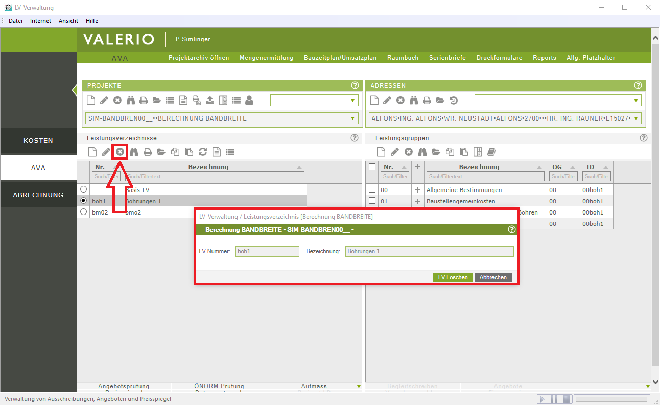 Leistungsverzeichnis löschen