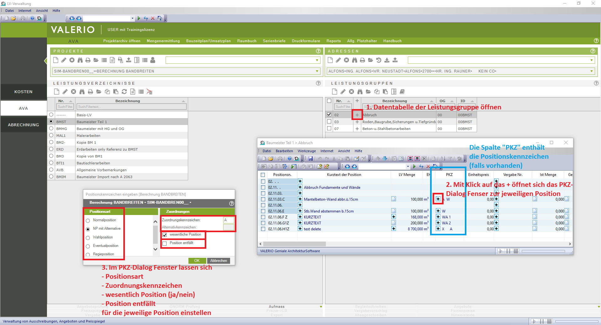 In Leistungsverzeichnissen gibt es auch Positionen, die mit einem sogenannten Positionskennzeichen versehen sind. Hier zeigen wir Ihnen, wie Sie in Valerio Positionskennzeichen setzen bzw. bearbeiten können.