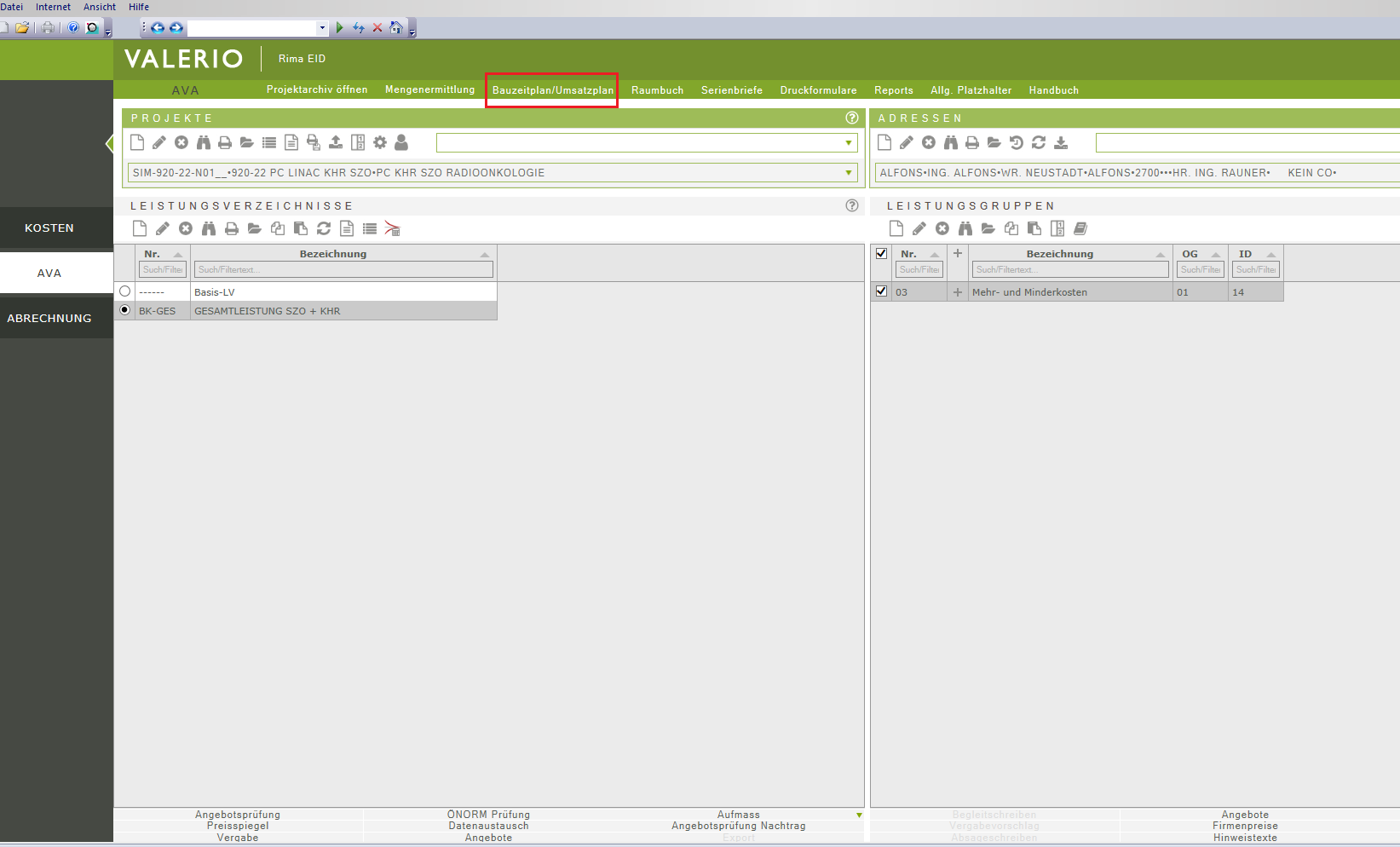Nachdem Sie das gewünschte Projekt geöffnet haben, klicken Sie auf „Bauzeitplan/Umsatzplan“.