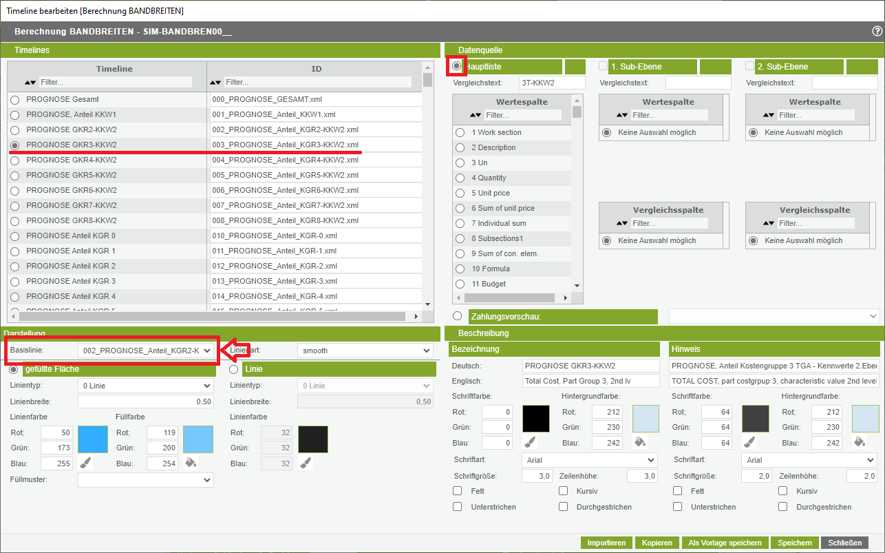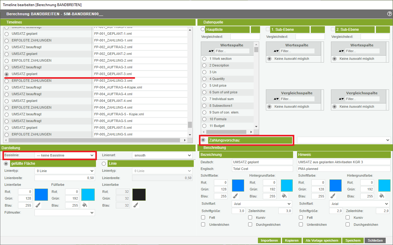 Hinweis: auf einander aufbauende Timelines (Funktion Basislinie) funktionieren nur bei „normalen“ Timelines, die aus der Historyberechnung mit Daten befüllt werden. Bei PMA-Timeline funktionieren aufbauende Timeline grundsätzlich nicht! (vgl. weiter unter PMA-Timelines)