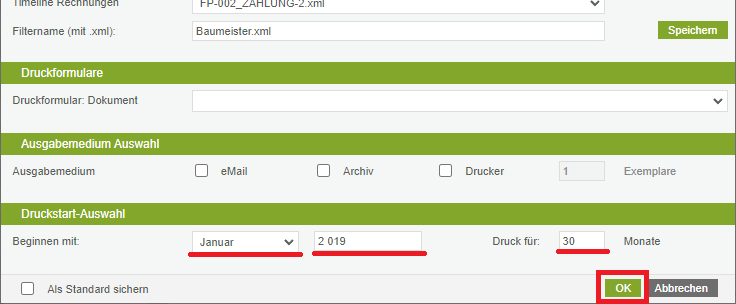 Gehen wir nochmals einen Schritt zurück zum Fenster zur Auswahl der Ausgabe der gewünschten Daten.