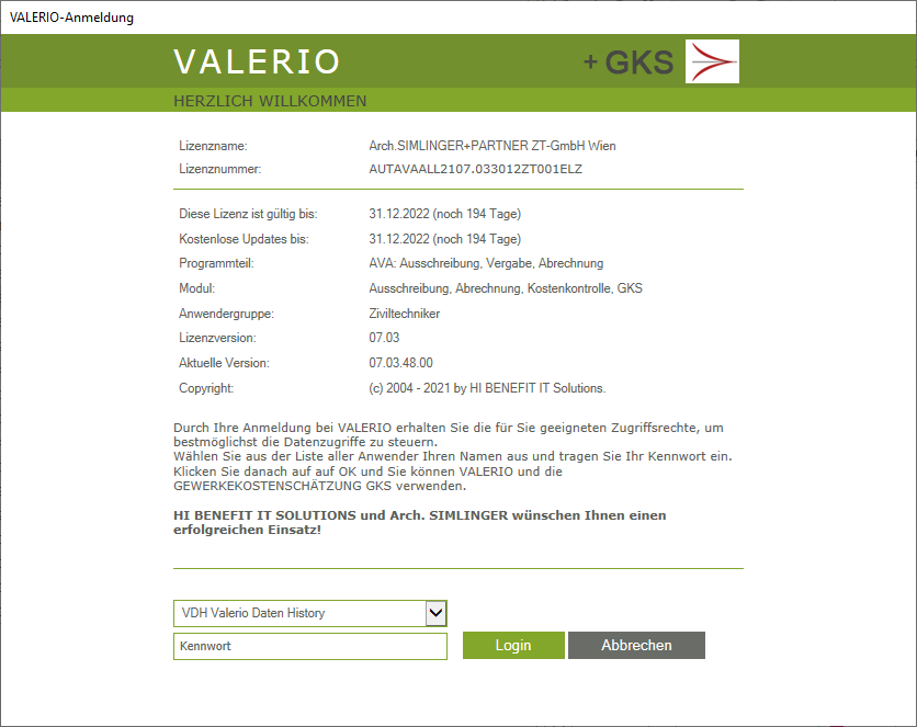 Nun startet Valerio zusätzlich zum laufenden Programm ein 2. Mal mit dem sogenannten VDH-User. Bitte bestätigen Sie diesen parallelen Start.