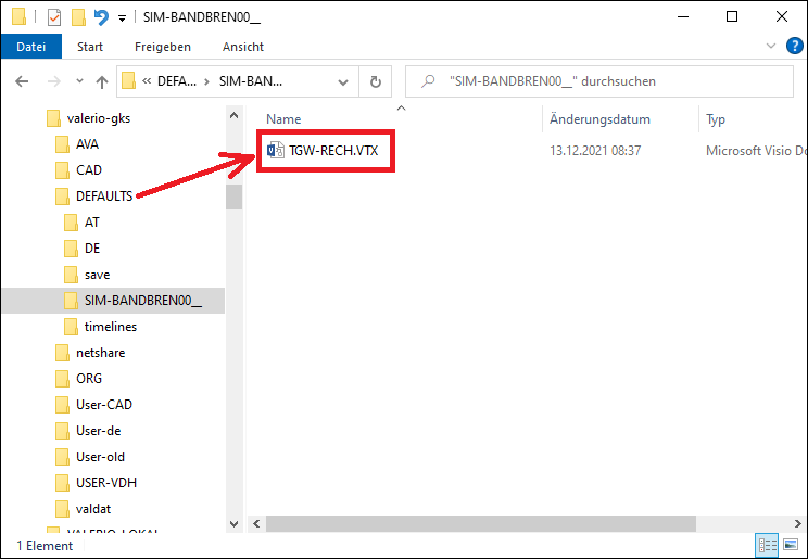 Legen Sie den Unterordner im Verzeichnis DEFAULTS mit dem Namen des Projektkennzeichens an.